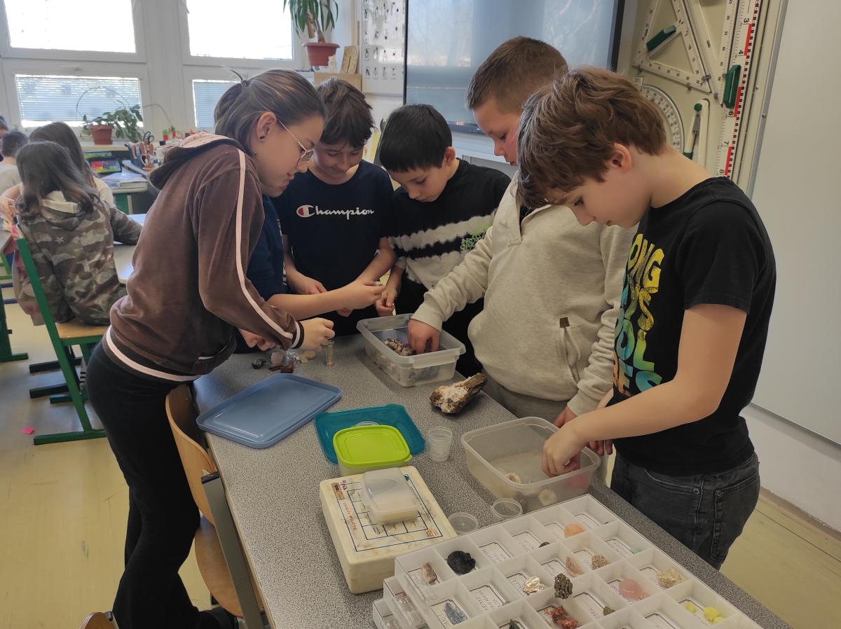 Žáci se učili poznávat minerály podle barvy, tvrdosti a struktury. Nechyběla ani možnost prozkoumat minerály pod mikroskopem, kde mohli vidět jejich detaily, které nejsou běžně viditelné pouhým okem. Každý si mohl minerály také vzít do ruky a zblízka prohlédnout, což vzbudilo velké nadšení.