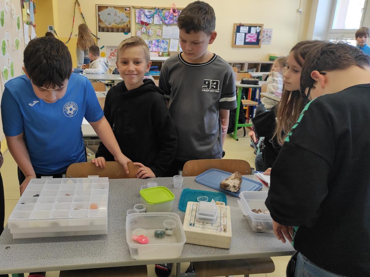 V rámci přírodovědy měli naši čtvrťáci jedinečnou příležitost ponořit se do fascinujícího světa minerálů. Během speciální hodiny si prohlédli sbírky minerálů z České republiky i ze světa a dozvěděli se mnoho zajímavostí.