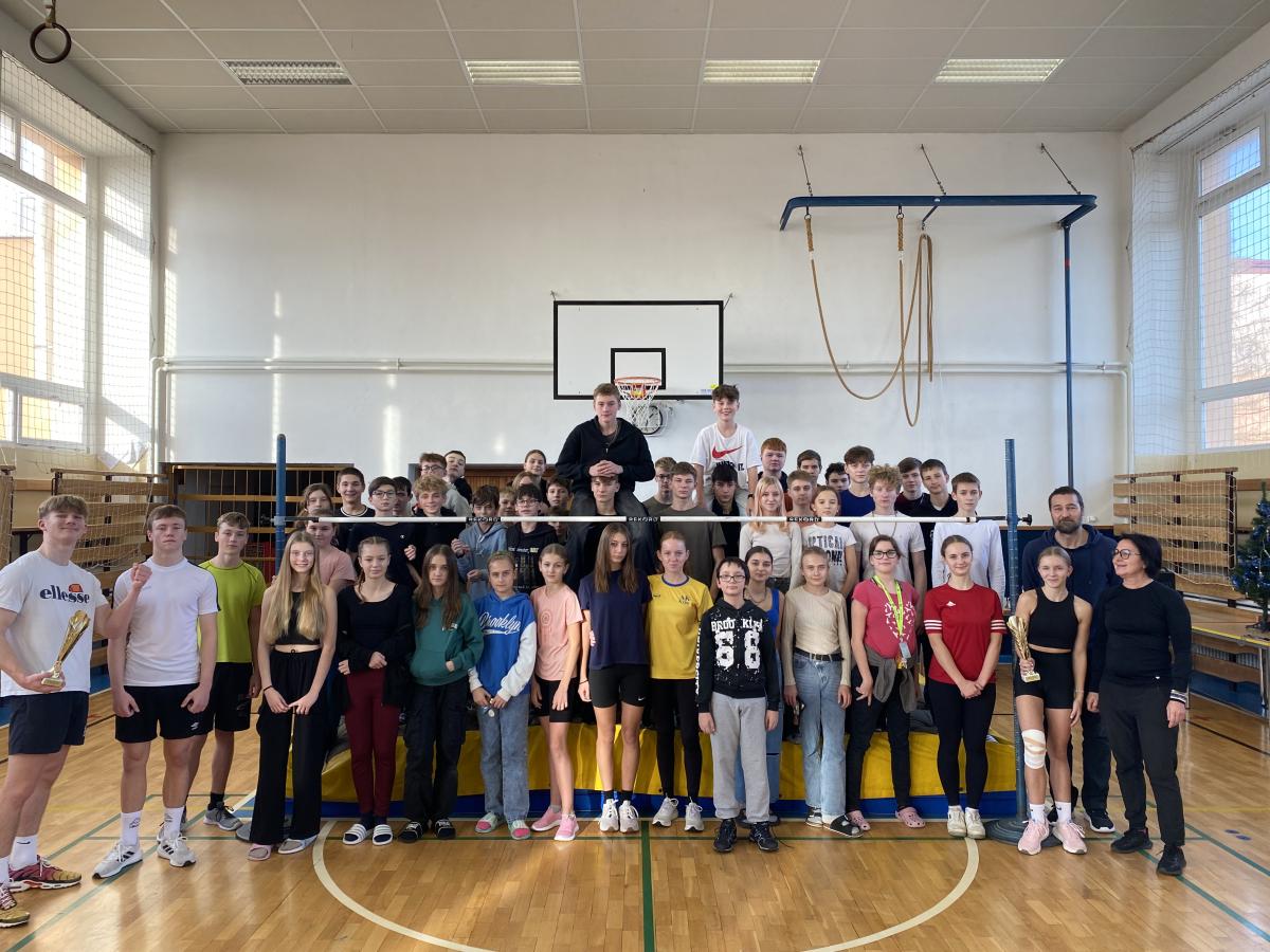Absolutní vítězové školního kola soutěže ve skoku vysokém: Adriana Vaculíková (130 cm) a Radek Jelínek (170 cm).